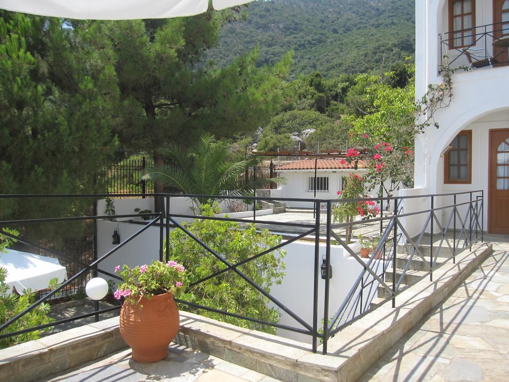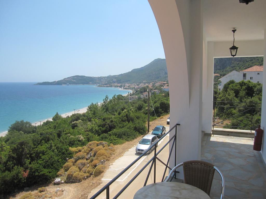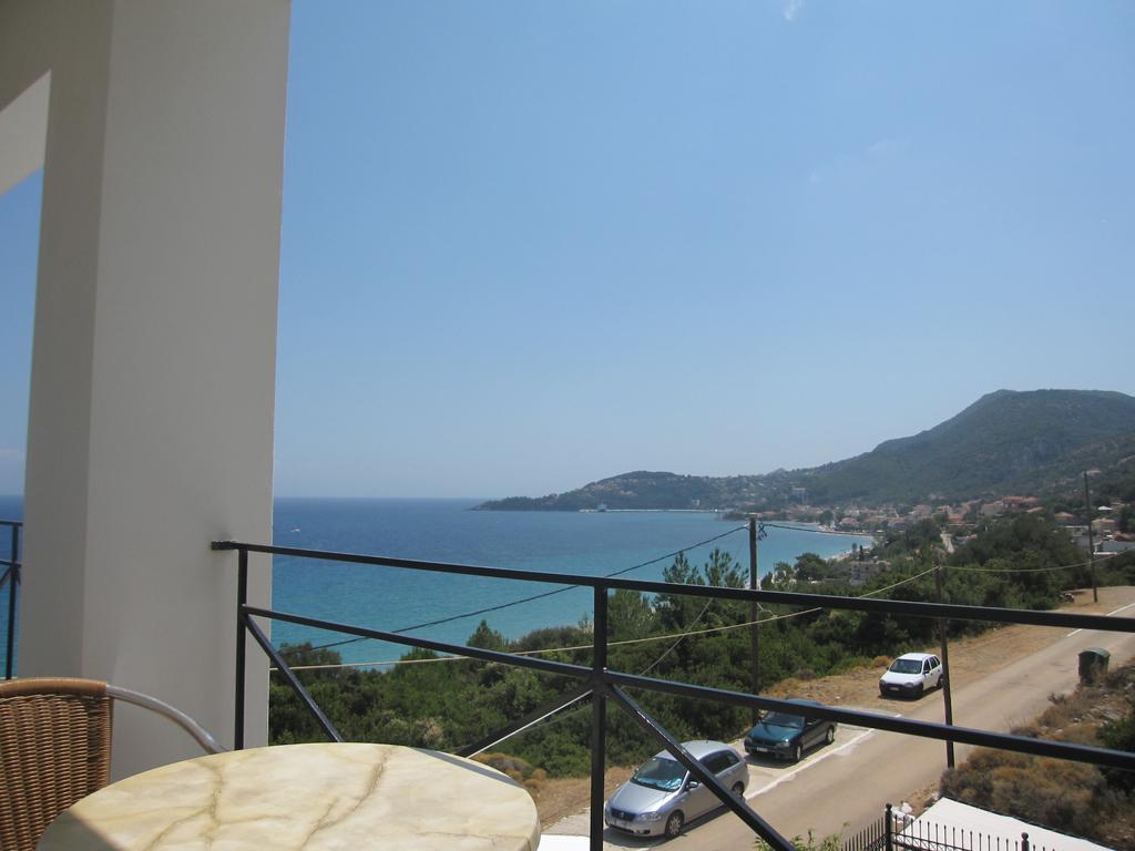 Tutti i monolocali Travlos sono dotati di angolo cottura con frigorifero, aria condizionata, TV e balcone con vista sul mare o sulle montagne.