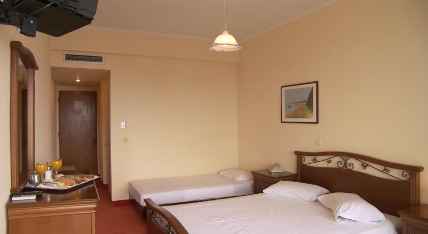 Le camere dell'Alexandros sono decorate con gusto e sfoggiano arredi in legno scuro, pavimenti in moquette, finestre insonorizzate, TV e mini-frigo.
