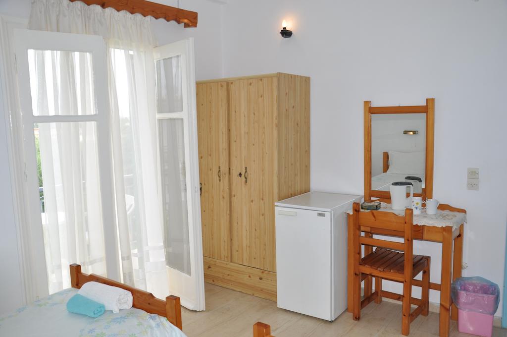 Le camere del Barbayiannis sono dotate di patio o balcone arredato, mini-frigo e bagno privato con vasca o doccia.