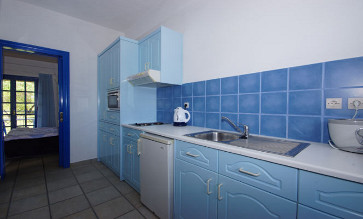 La struttura dispone di servizi come un salone, una sala TV, una piscina, un bar a bordo piscina e un ristorante caffetteria bar / e un tavolo da biliardo. Per i piccoli ospiti c'è un'area giochi con molti giocattoli. Tutti gli appartamenti sono dotati di angolo cottura completamente attrezzato con 2 piastre elettriche, frigorifero, mini-forno e un bollitore e tostapane. Gli appartamenti con una camera da letto hanno due letti singoli e un balcone.