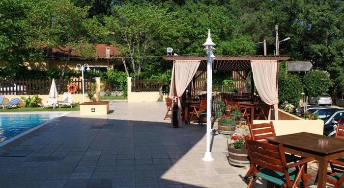 C'è anche un bar per tutte le vostre esigenze di ristoro e un famoso ristorante che serve colazioni, pizza, pasta, insalate, specialità greche, carne alla griglia, bistecca e piatti appositamente per i bambini, pesce, bocconcini di pollo, scampi, hamburger e salsicce. Tutti i visitatori possono anche utilizzare tavoli da ping pong e campi di mini golf, giocare a biliardo al bar o guardare la TV satellitare.
