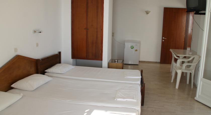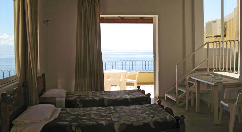 Situato a Benitses, a 1 km dal centro e a 10 metri dalla spiaggia, il Greco Hotel vanta una vista panoramica sul Mar Ionio e una terrazza all'ultimo piano con piscina, bar a bordo vasca e lettini. Le camere dispongono di aria condizionata, bagno privato, asciugacapelli, TV, telefono e frigorifero.