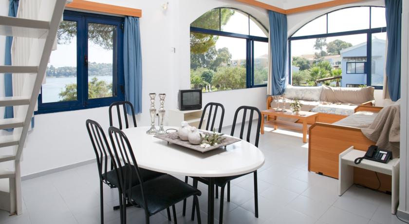 Situata nella baia di Gouvia, questa struttura circondata da palme e ulivi offre una piscina, 2 campi da tennis e appartamenti con aria condizionata, angolo cottura e connessione Wi-Fi gratuita. Tutti gli alloggi del Govino Bay dispongono di TV e cucina completamente attrezzata con forno a microonde e zona pranzo. Alcuni includono una veranda privata con affaccio sul Mar Ionio e sui giardini dell'hotel.