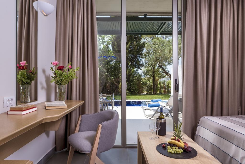 Tutte le camere e le suite sono immerse in splendidi giardini e presentano un balcone o terrazza con vista sul Mar Ionio o sul giardino, l'aria condizionata, una TV satellitare a schermo piatto e un asciugacapelli.