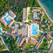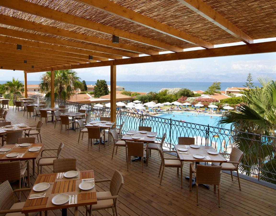 il Roda Beach Resort & Spa offre un ristorante, un parcheggio privato gratuito, una piscina all'aperto e un bar. Dotato di un salone in comune, questo resort a 5 stelle dispone di camere climatizzate con bagno privato. A vostra disposizione una reception aperta 24 ore su 24, un miniclub e il servizio di cambio valuta.