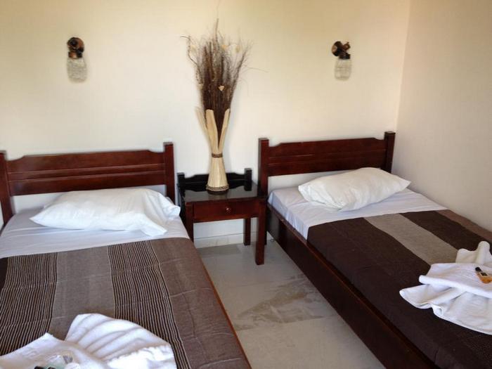 Ci sono solo 32 camere, tutte dotate di TV satellitare , aria condizionata , ( piccolo supplemento da pagare in loco ) mini frigo , bagno con doccia e balcone con vista sul Mar Ionio o la vista mozzafiato sulle scogliere verdi con cipressi e ulivi .