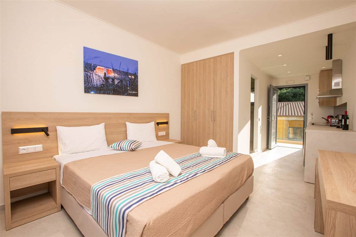 Disponiamo di 4 appartamenti familiari (due camere da letto, cucina, bagno e balcone), 4 Superior Garden Studios (una camera da letto, cucina, bagno) e 4 Deluxe Studios (una camera da letto, balcone, cucina, bagno) e 8 Deluxe Sea View Studios (uno camera da letto, cucina, bagno e balcone). Tutte completamente attrezzate e adatte a famiglie, coppie o amici. Un'atmosfera intima e affascinante con arredi e comfort di alta qualità. I 20 diversi stili di appartamenti e monolocali di lusso del Passas Mare ti consentono di scegliere l'ambiente perfetto per la tua prossima visita all'isola di Corfù.