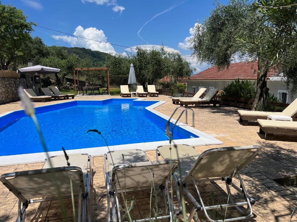 Circondati da ulivi e vista sulle montagna con una piscina di grandi dimensioni, un parco giochi per bambini e una rilassante zona barbecue.