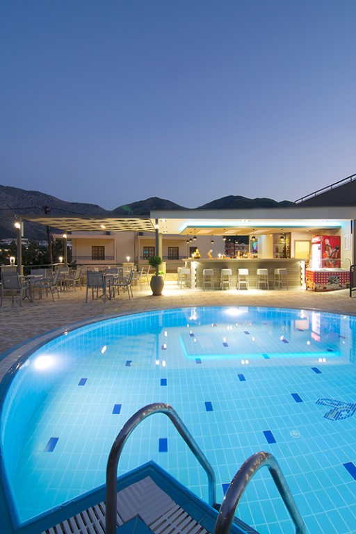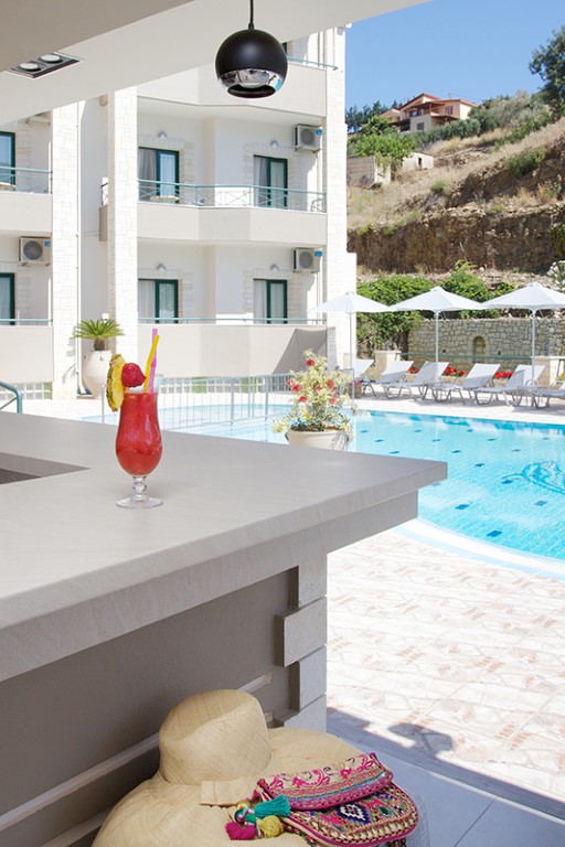 Lo snack bar a bordo vasca, provvisto di giochi da tavolo e di un ampio schermo TV, propone un assortimento di bevande e pasti leggeri. Attrezzata con lettini e ombrelloni, la spiaggia di Bali offre la possibilità di praticare sport acquatici e il lungomare vanta taverne e bar che servono pasti e drink. Il villaggio di Bali sorge a 25 km a est di Rethymno e a 50 km a ovest di Heraklion.