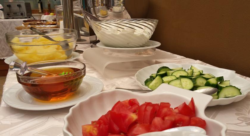 Nella sala colazioni viene allestito ogni mattina un ricco buffet, mentre il ristorante propone piatti greci e internazionali. L'Amazones ospita inoltre un lounge-bar che serve bevande rinfrescanti e il tipico raki.