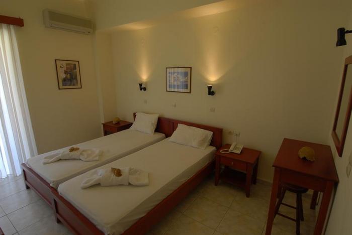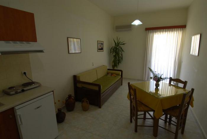 Questo edificio di due piani molto ben curato è gestito da una simpatica famiglia. La struttura dispone di reception, soggiorno con TV e canali satellitari, rigoglioso giardino, taverna con terrazza coperta, frequentata anche dagli abitanti del posto e famosa soprattutto per i piatti a base di pesce e le tipiche ricette cretesi. L'utilizzo di ombrelloni e lettini sulla spiaggia è a pagamento.