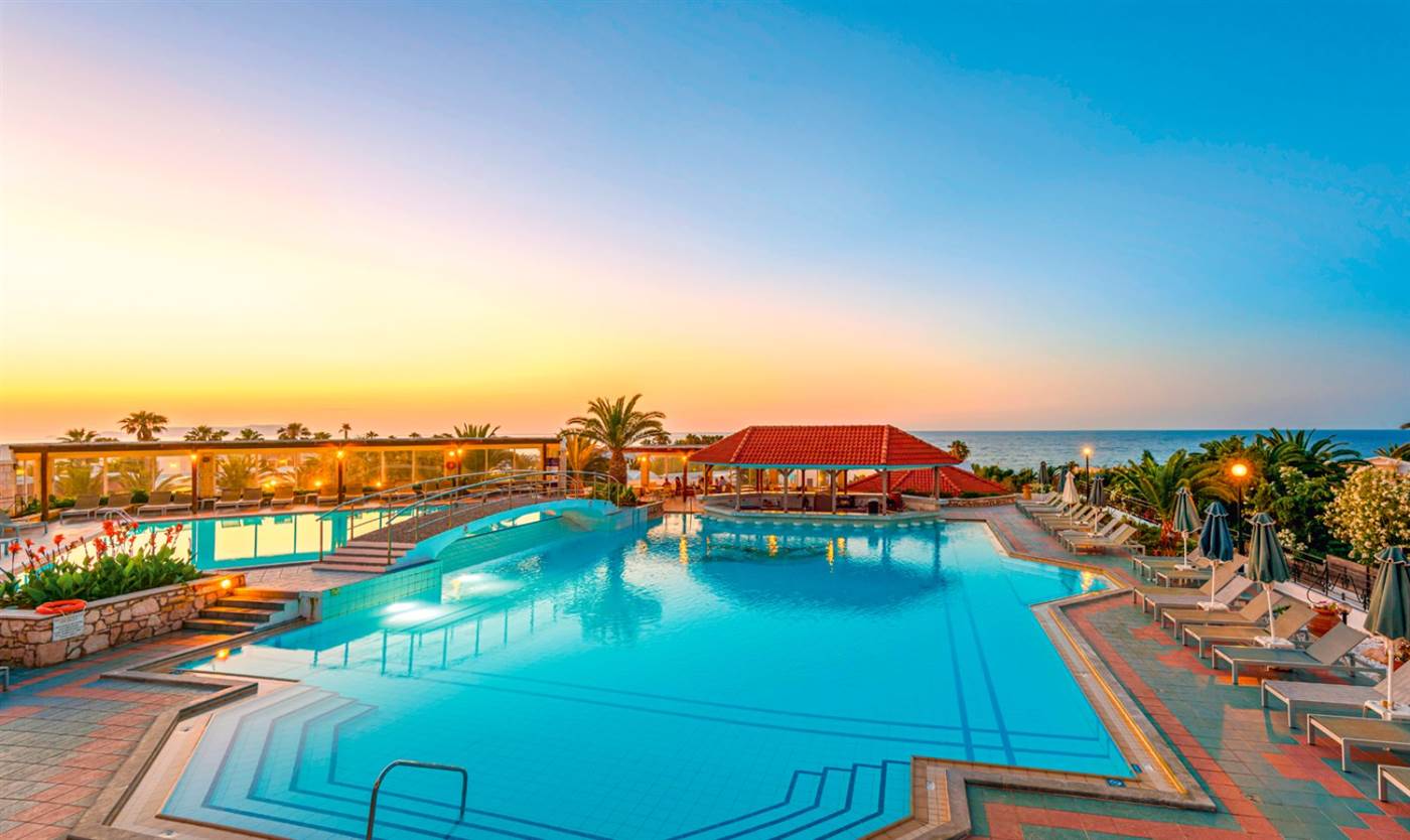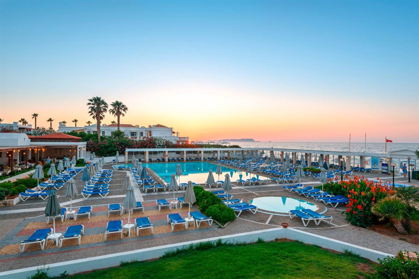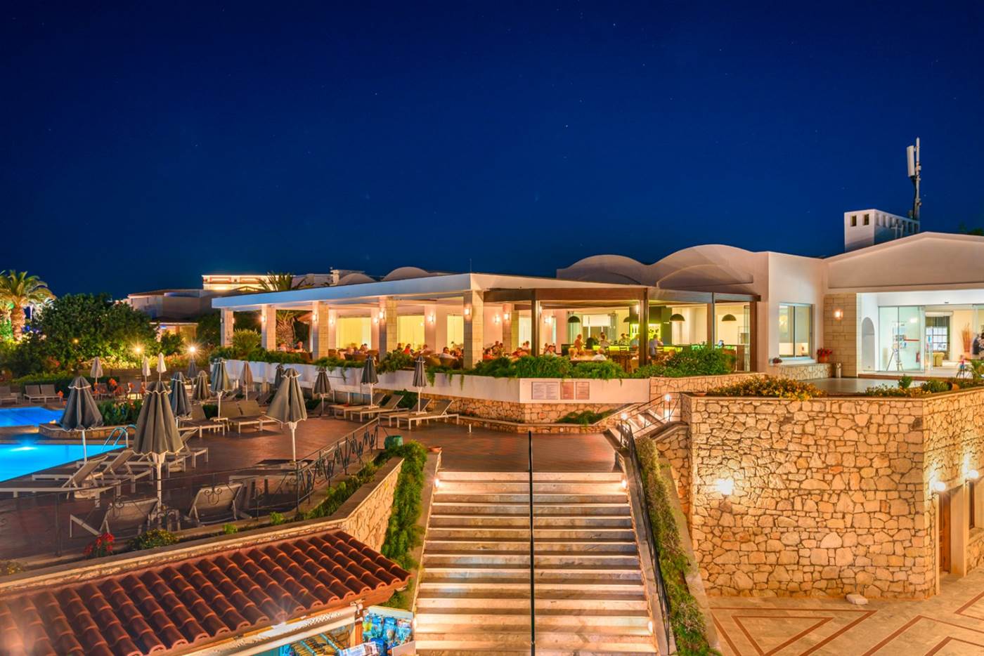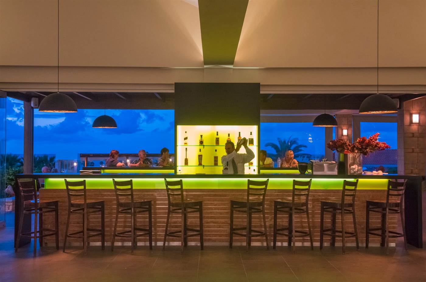 Ristorante principale con servizio a buffet, show cooking con angolo della pasta e specialità alla griglia, settimanalmente 3 cene tematiche (a settimane alterne, italiana, mediterranea e greca, cretese, internazionale e di gala). Taverna à la carte, aperta per cena dalla prima settimana di giugno all’ultima settimana di settembre, 5 volte a settimana. Snack bar, lobby bar, bar presso la piscina e bar in spiaggia.
