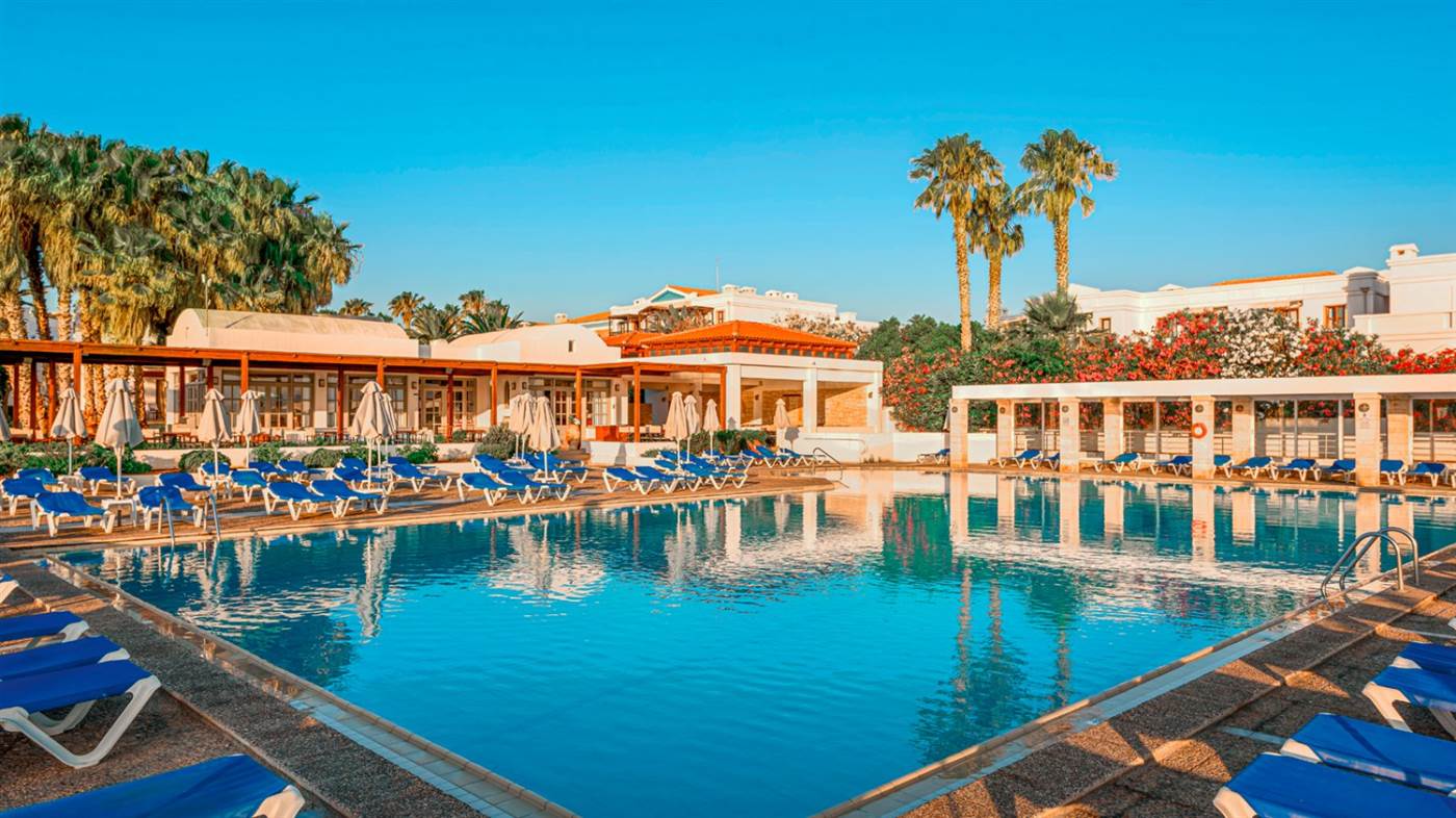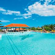 Si affaccia direttamente sulla spiaggia, con accesso al mare con sabbia mista a ciottolini, ma che con una breve passeggiata di circa 500 m, si possono facilmente raggiungere numerose calette di sabbia chiara e fine e dal mare cristallino. Dispone di 4 piscine di cui 2 per bambini, una delle quali presso il miniclub, e 1 coperta.