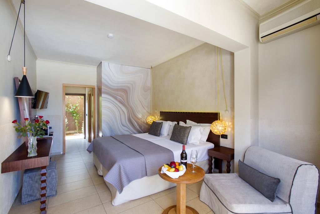 Tutti climatizzati e affacciati sui bellissimi giardini dell'hotel, gli alloggi dispongono di connessione WiFi gratuita, TV satellitare LCD con 25 canali stranieri e 1 canale di notizie greco, frigorifero e balconi con vista sul mare o sulla piscina.