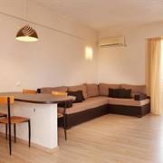 La spiaggia di sabbia e di ghiaia è a due minuti a piedi dagli appartamenti. La piscina, sulla spiaggia offre una zona tranquilla  con sedie a sdraio per il vostro relax ed ombrelloni per il vostro comfort. Il bar della spiaggia, oltre bevande fredde dispone inoltre di una vasta gamma di spuntini caldi e freddi.