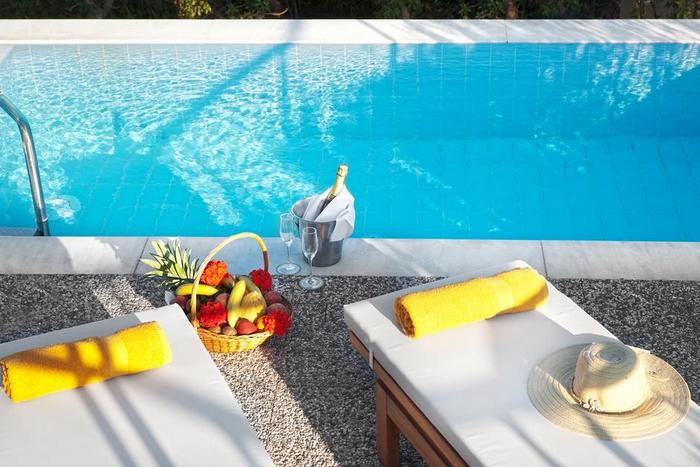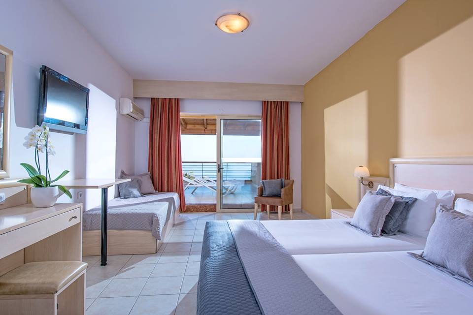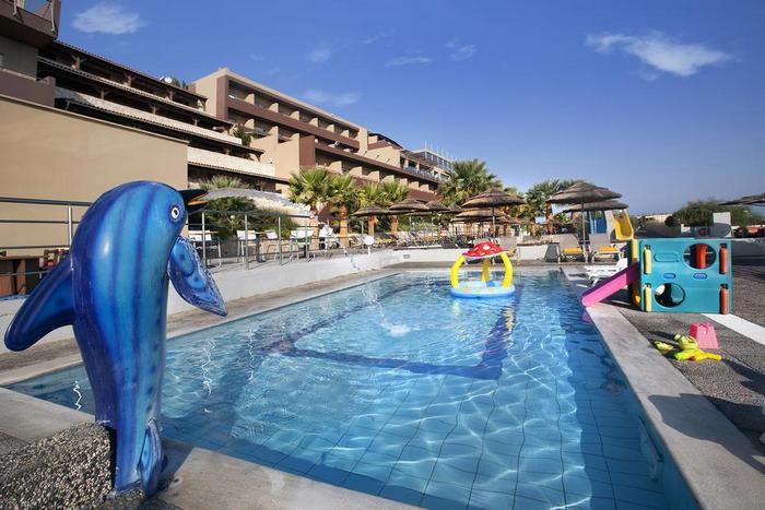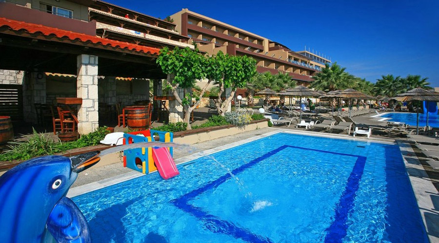 Blue Bay Resort & Spa offre una favolosa vista panoramica sul mare di Creta, 7 piscine, 2 ristoranti, 2 bar a bordo piscina e vari impianti sportivi, tra cui una palestra e un campo multiuso per tennis, pallavolo e basket.
