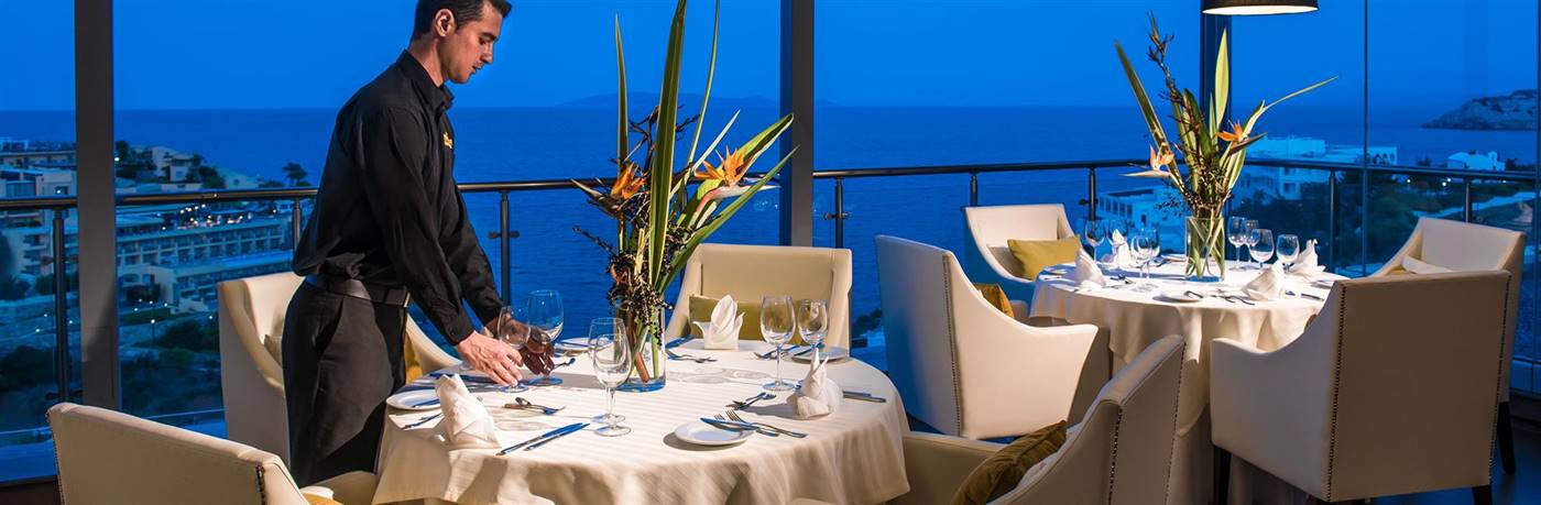 La struttura ospita un ristorante a buffet e un ristorante à la carte, che servono pietanze cretesi, greche e internazionali, un bar principale e 2 snack bar a bordo piscina.