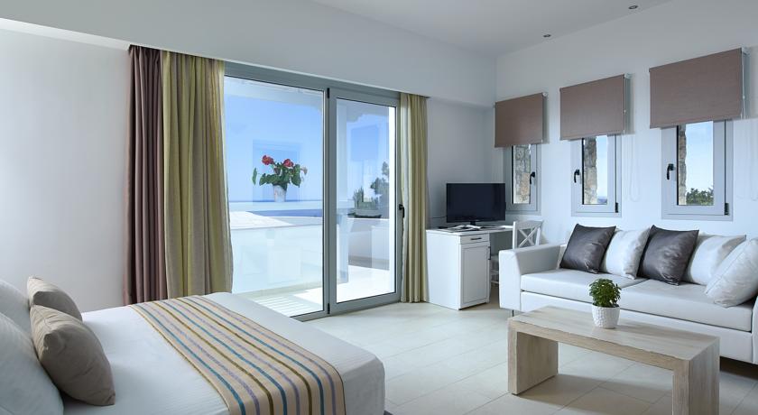 Le camere e le suite dell'Aroma Creta sono climatizzate e dotate di balcone privato, mini-frigo, TV e bagno interno con vasca o doccia.