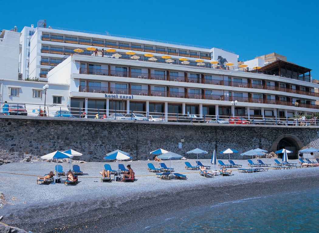 Hotel Coral è situato sulla linea costiera di Agios Nikolaos con vista sul blu infinito della baia di Mirabello.  La spiaggia di fronte al mare, premiata con la prestigiosa Bandiera Blu, vi darà la possibilità di nuotare in acque cristalline .