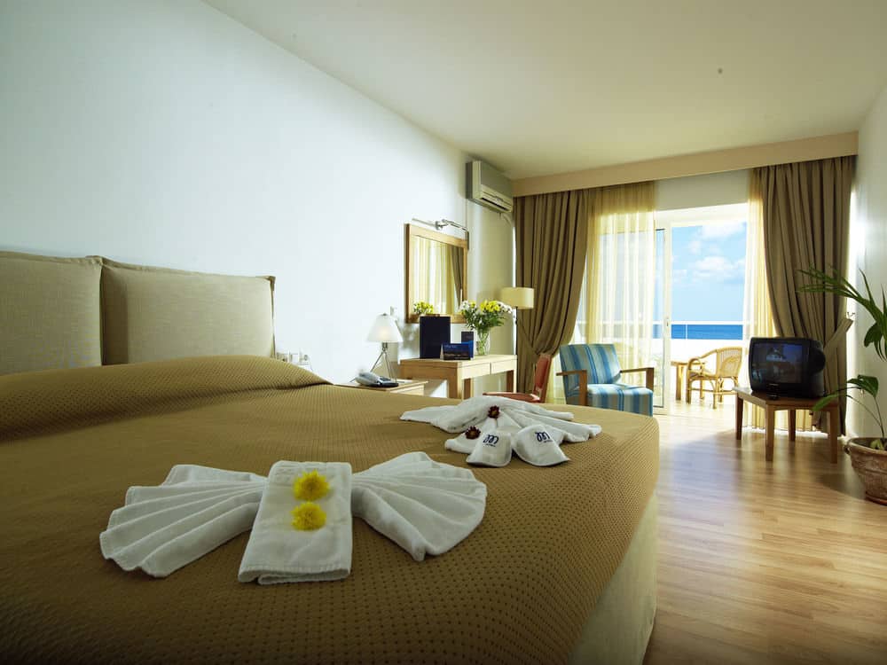 Tutte climatizzate, le camere presentano arredi tradizionali, un balcone affacciato sul mare o sulla città, una TV satellitare ed un frigorifero.