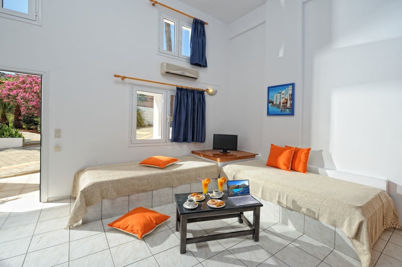 Tutti i monolocali e gli appartamenti dispongono di bagno privato con servizi, angolo cottura completamente attrezzato ,frigorifero, balcone o terrazza con piscina e vista sul giardino, oltre a una vista sul paesaggio circostante. Aria condizionata e cassette di sicurezza sono disponibili a pagamento.