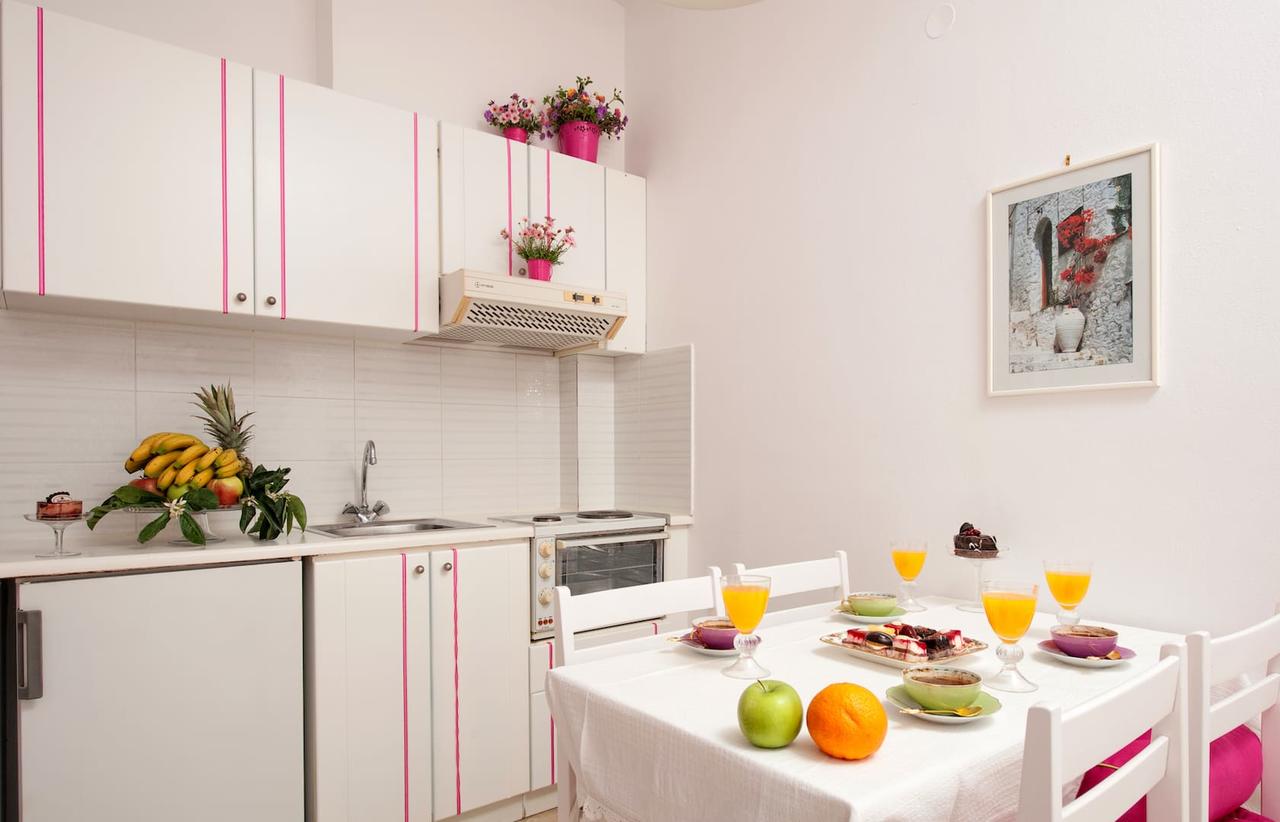 Arredati in stile moderno con mobili bianchi in legno e tonalità rosa, i monolocali e gli appartamenti del Galini dispongono di aria condizionata, angolo cottura. Tutte le unità abitative sono dotate di area salotto, zona pranzo, frigorifero, cassaforte. Il bagno privato è completo di doccia.