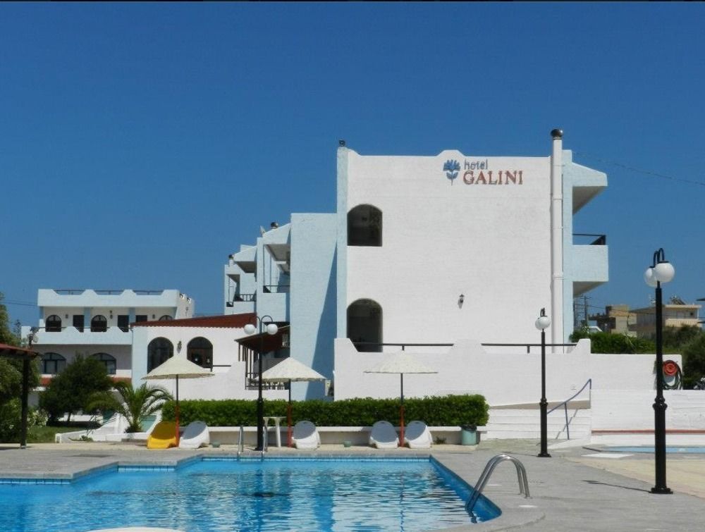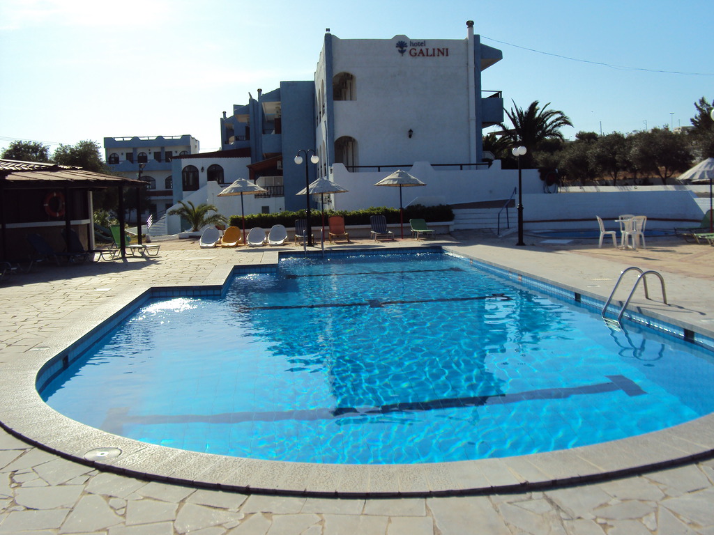 Hotel Galini è composto da un edificio principale e piccoli bungalow. L'hotel dispone di una piscina per adulti ed una piscina per bambini oltre ad un parco giochi per i piu' piccoli. Lettini e ombrelloni sono disponibili gratuitamente. Uno snack bar all'aperto vi offrirà bibite fresce e snack veloci. Disponibile per gli ospiti nella sala  principale: una sala TV ed un internet point.