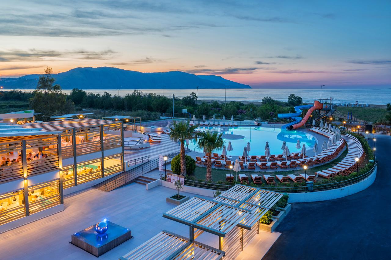 Situato a 150 metri dalla spiaggia di Georgioupolis, questo resort a 5 stelle è immerso in un giardino di palme con lo sfondo dei Lefka Ori, e offre una grande piscina a forma libera con scivoli d'acqua, un ristorante a buffet e sistemazioni con connessione WiFi gratuita.