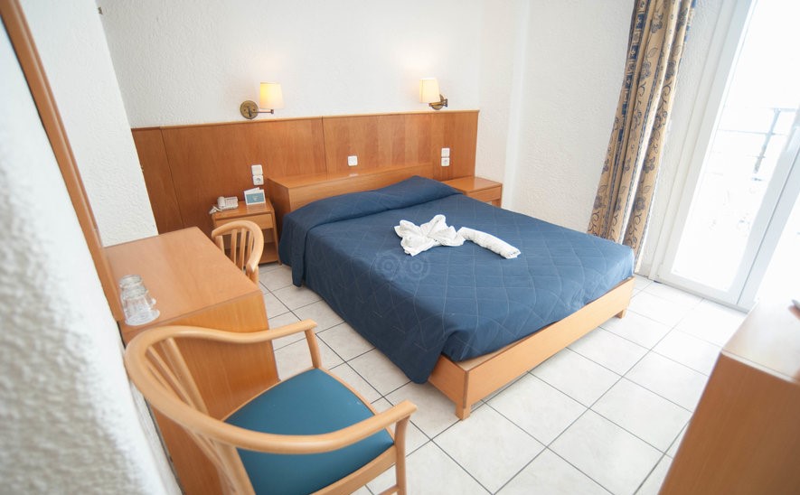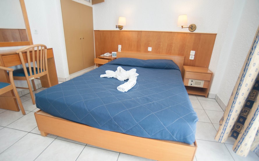 Le camere sono climatizzate e si aprono su un balcone privato, regalando viste sulla piscina, sulle montagne, e, in alcuni casi, sul Mare di Creta. Luminose e spaziose, presentano una zona soggiorno con TV satellitare e minibar, e un bagno con cabina doccia e asciugacapelli.