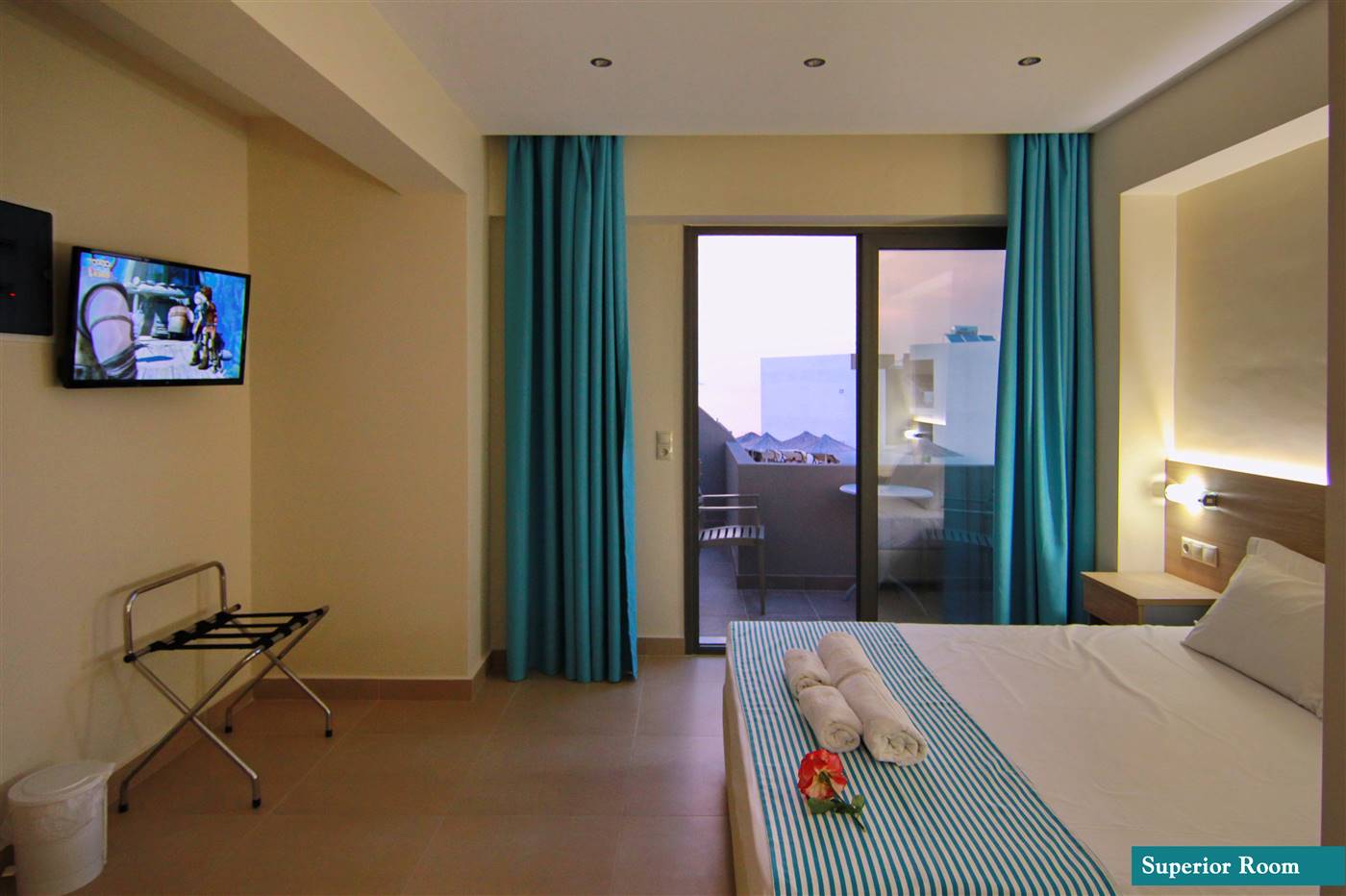 Die Zimmer bieten Platz für bis zu 3 Erwachsene oder 2 Erwachsene und 1 Kind und verfügen über ein Badezimmer mit Dusche, Klimaanlage, einen Mini-Kühlschrank und einen Balkon oder eine Terrasse.
