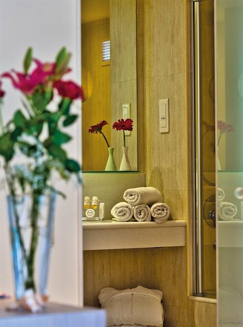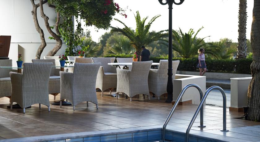 Lo snack bar a bordo piscina serve vari piatti greci e mediterranei per tutta la giornata, mentre il ristorante à la carte Chimera propone sapori unici per cena. La colazione comprende miele di timo, zuppe e torte tipiche, specialità di carne locali e bevande a base di erbe.