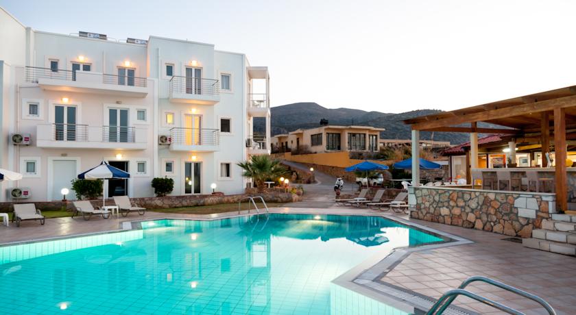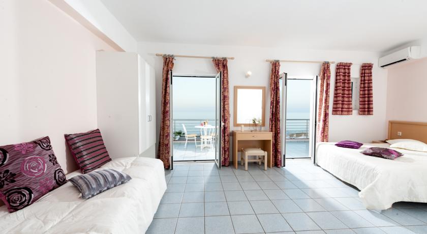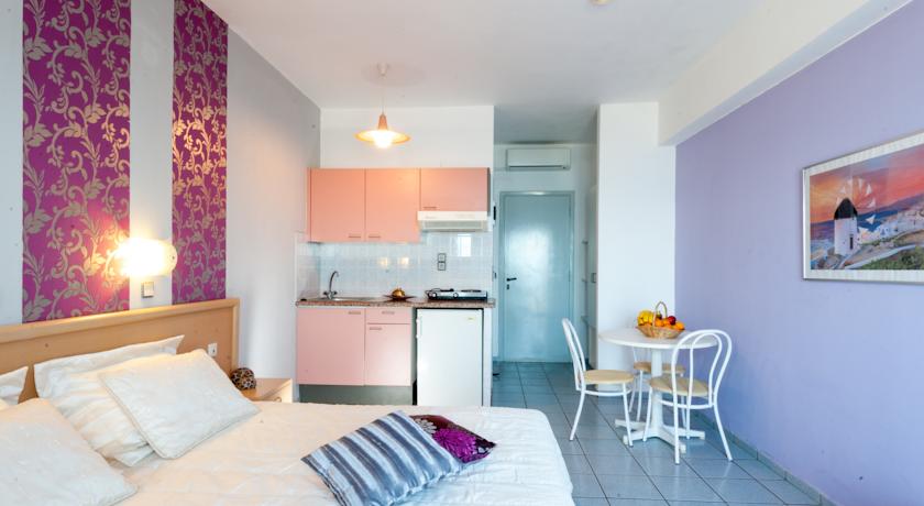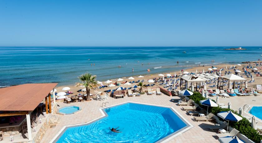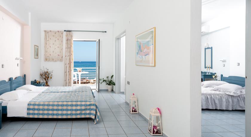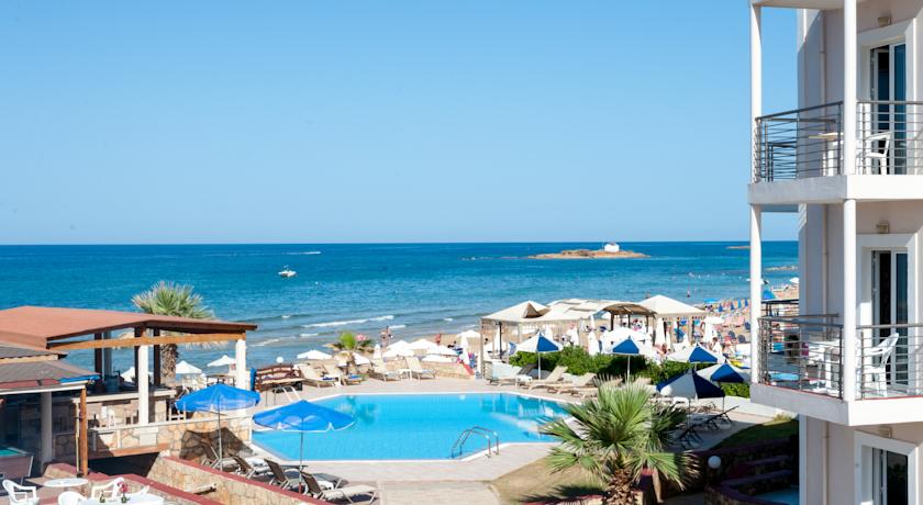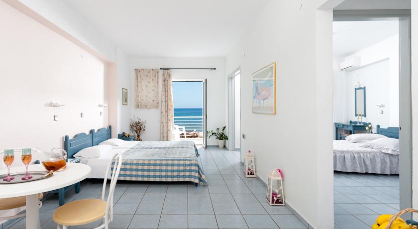 Situato di fronte alla spiaggia, a 10 minuti a piedi da Malia, questo complesso offre una piscina con idromassaggio e uno snack bar che vanta, come le camere, la vista sul mare. Il parcheggio e la connessione Wi-Fi sono gratuiti.