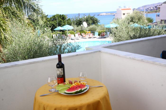 Le camere del Lisa Mari si aprono su un balcone privato e sono dotate di TV satellitare e di un frigorifero. Ogni camera dispone anche di un proprio bagno con vasca o doccia e asciugacapelli. Gli ospiti possono gustare piatti greci e internazionali per il pranzo e la cena, spuntini e bevande sono serviti al bar munito di una  TV a schermo piatto.