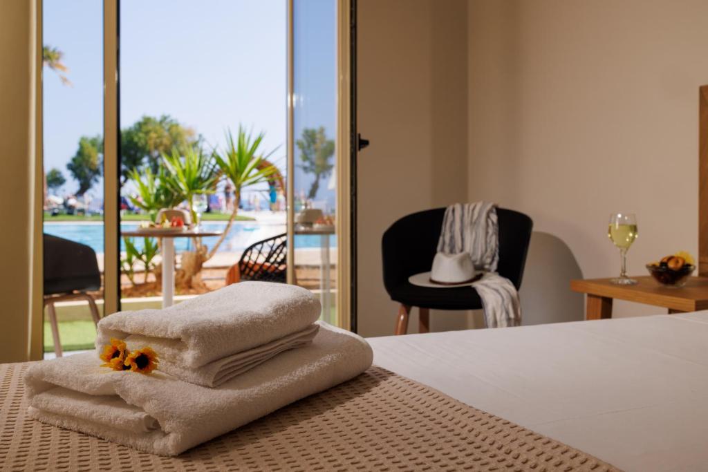 Ubicato a Mália, a 100 metri da Tropical Beach, Malia Bay Beach Hotel & Bungalows propone una piscina all'aperto, un parcheggio privato gratuito, un giardino e una sala comune. Con WiFi gratuito, questo hotel a 4 stelle offre una terrazza e un bar. Alcune unità della struttura hanno un balcone con vista città.