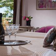 Le 35 camere sono spaziose e confortevoli, dallo stile originale, con archi in pietra e pavimenti in marmo. Le camere doppie e triple presentano un bagno privato, un balcone, un minibar, una cassaforte e l'aria condizionata.
