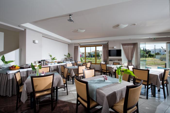 L'albergo include il WiFi gratuito nelle aree comuni e un bar con area salotto esterna a bordo piscina, e spesso organizza serate greche con barbecue, musica cretese e balli.
