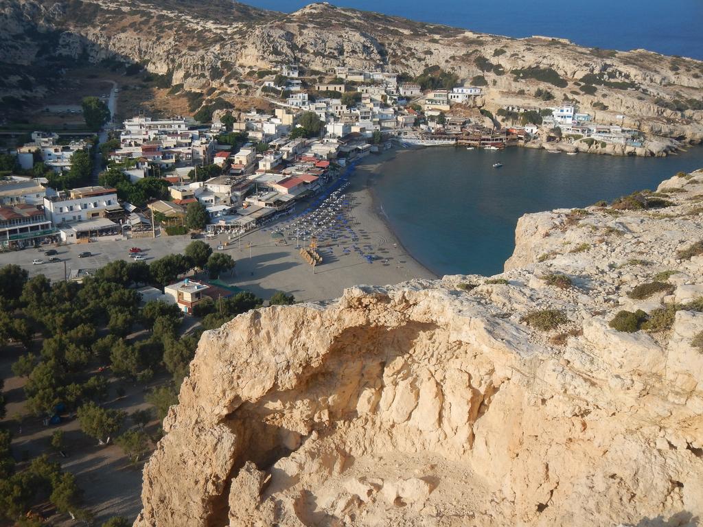 Circondato da una natura rigogliosa, a 250 metri dalla spiaggia, il Matala Bay Hotel & Apartments ospita una piscina, un ristorante, uno snack bar e alloggi climatizzati con balcone arredato. Le sistemazioni includono un frigobar, una TV e un bagno privato con doccia e asciugacapelli.