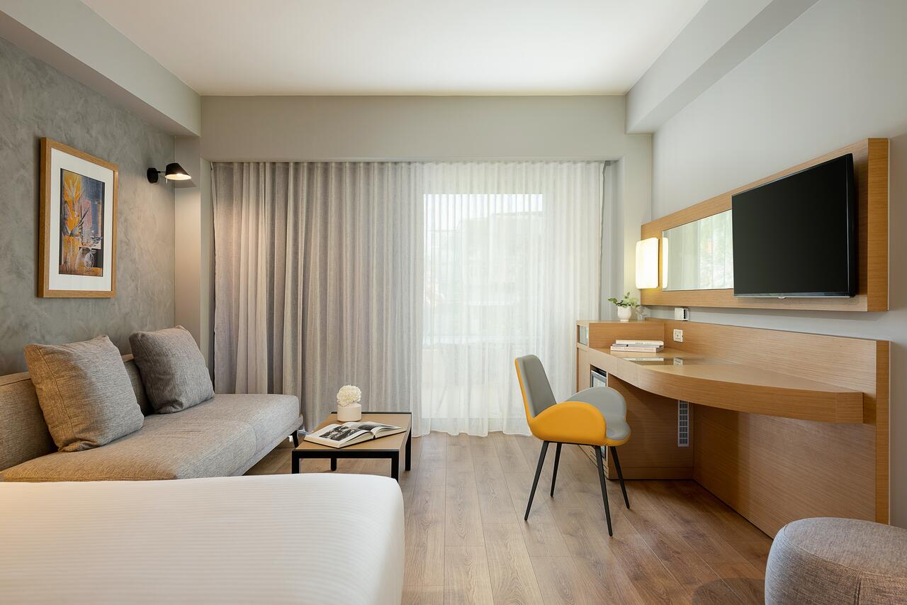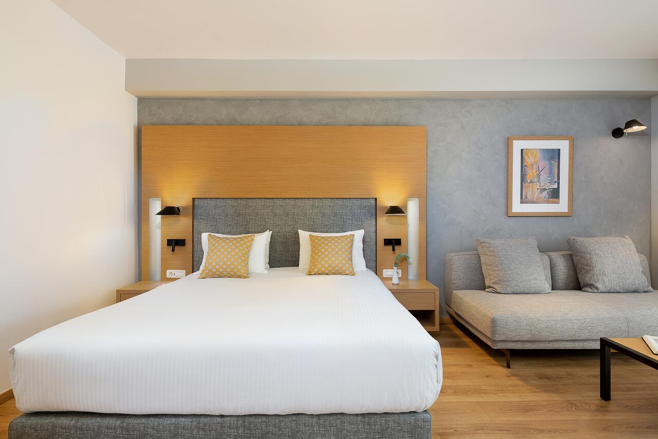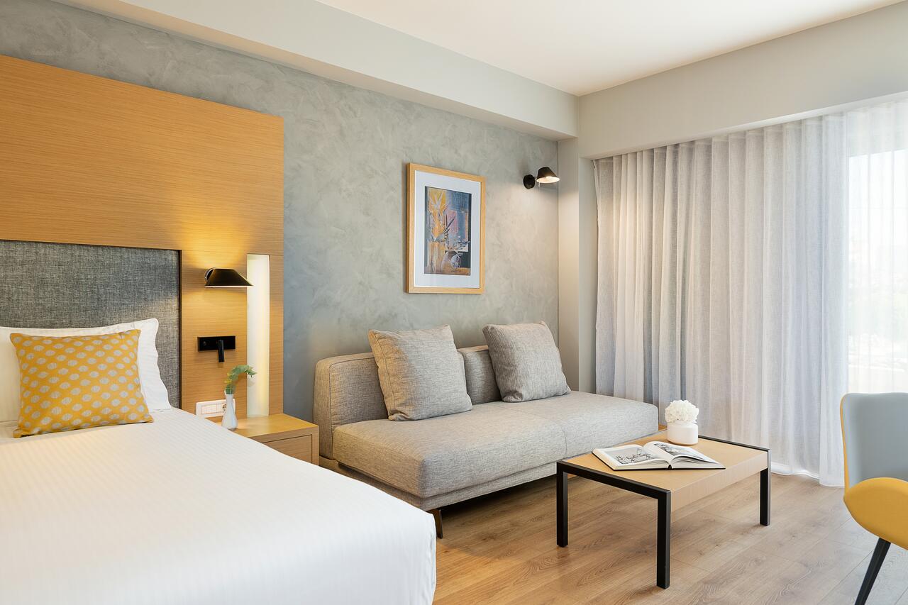 Le camere sono dotate di balcone privato con una splendida vista sul mare, sulla piscina e sul giardino. Inoltre vantano l'aria condizionata, un bagno in marmo e una zona giorno completa di TV satellitare.