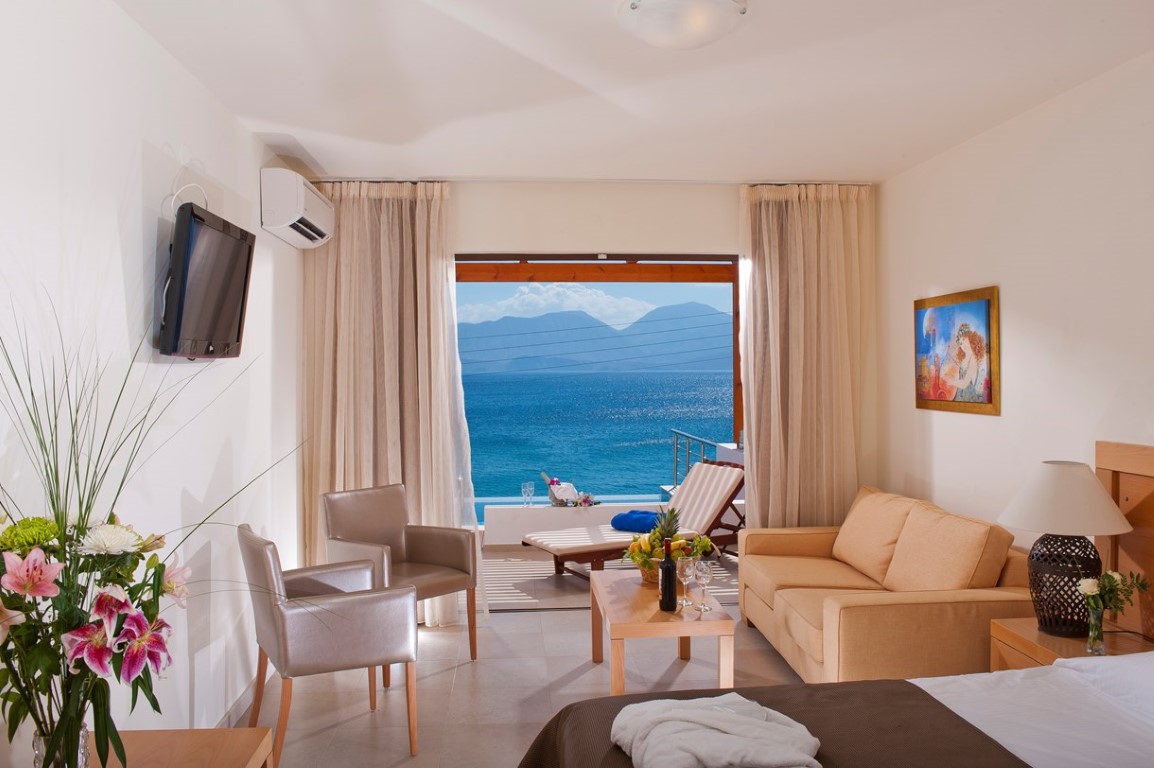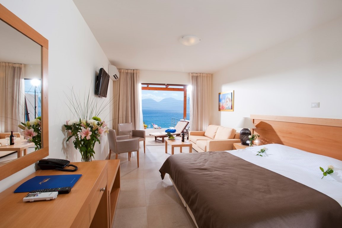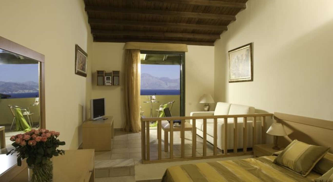 Tutte le sistemazioni del Miramare Resort presentano viste mozzafiato sulla città di Aghios Nikolaos e sulla Baia di Mirabello, arredi tradizionali cretesi, aria condizionata, ampia zona giorno e TV satellitari. La colazione a buffet viene servita ogni giorno nel ristorante principale del Miramare, mentre gusterete il pranzo e la cena sulla grande terrazza affacciata sulla baia. Troverete anche un bar a bordo piscina e un lounge-bar, ideali per sorseggiare un drink rinfrescante all'aperto o al chiuso.