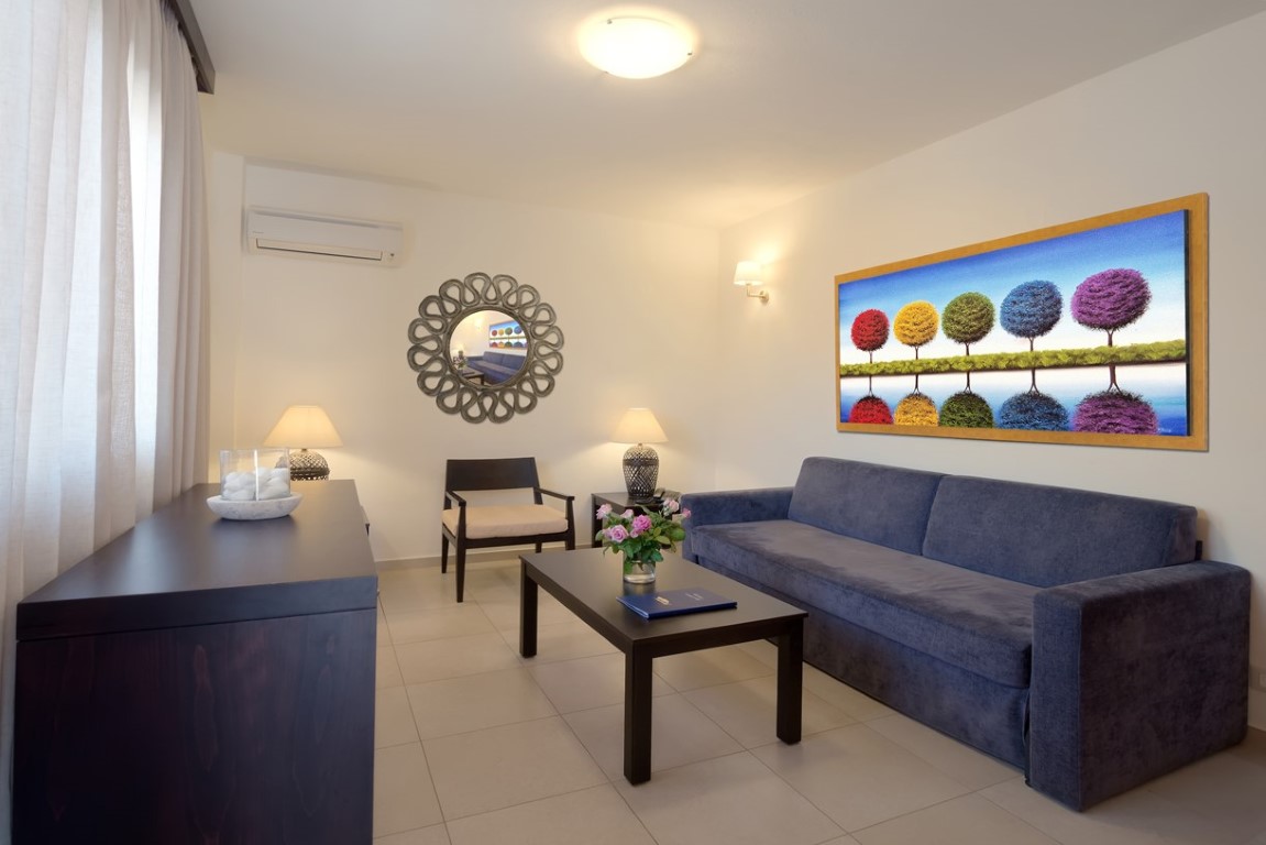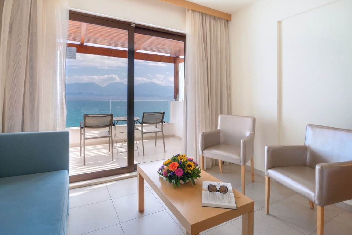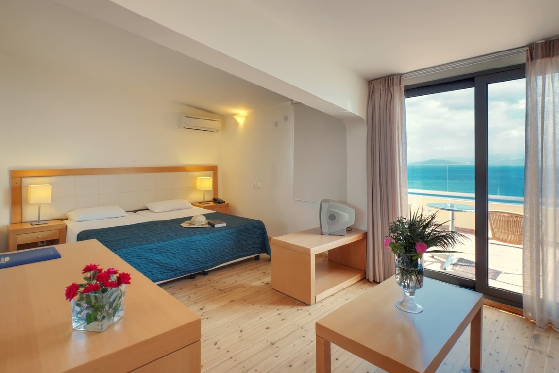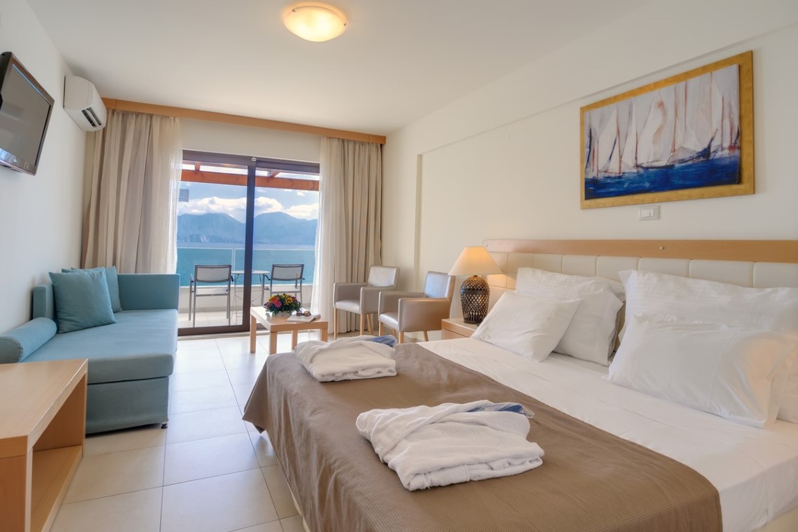 Tutte le sistemazioni del Miramare Resort presentano viste mozzafiato sulla città di Aghios Nikolaos e sulla Baia di Mirabello, arredi tradizionali cretesi, aria condizionata, ampia zona giorno e TV satellitari. La colazione a buffet viene servita ogni giorno nel ristorante principale del Miramare, mentre gusterete il pranzo e la cena sulla grande terrazza affacciata sulla baia. Troverete anche un bar a bordo piscina e un lounge-bar, ideali per sorseggiare un drink rinfrescante all'aperto o al chiuso.