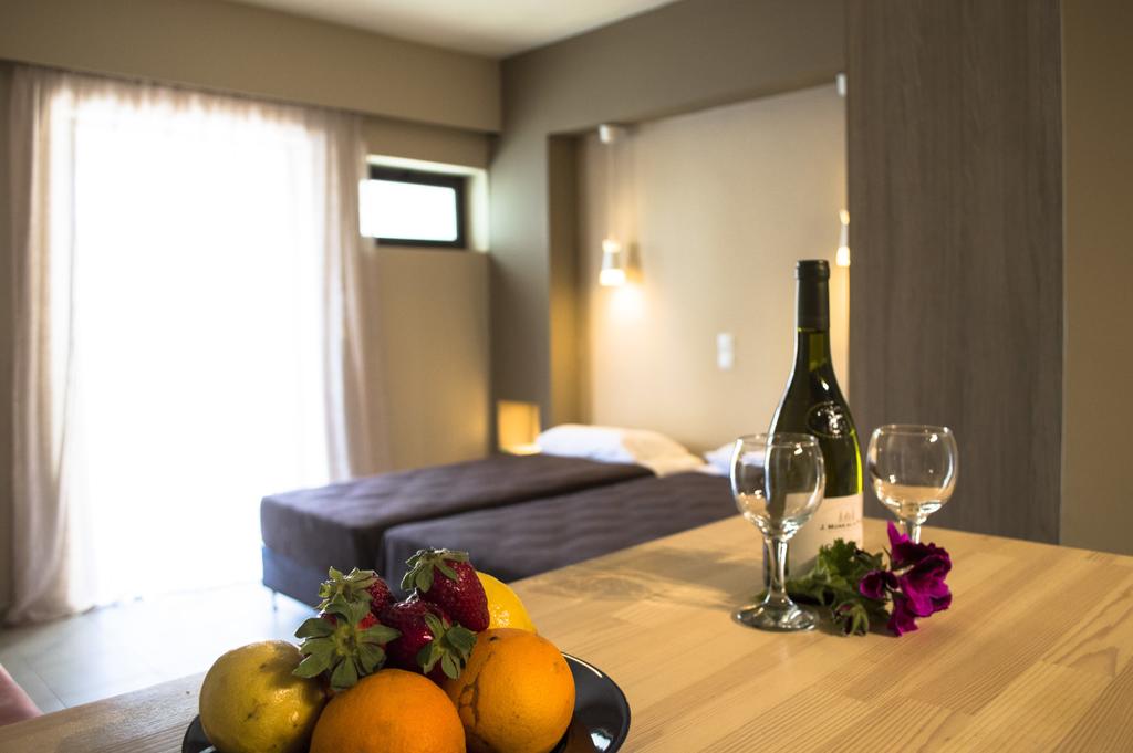 I monolocali e gli appartamenti del Nireas Hotel sono ben arredati e dotati di una confortevole zona notte, una cucina completamente attrezzata e uno spazioso balcone con vista sulla piscina, sul mare o su Daratso, ideale per rilassarsi leggendo un libro o sorseggiando un caffè.