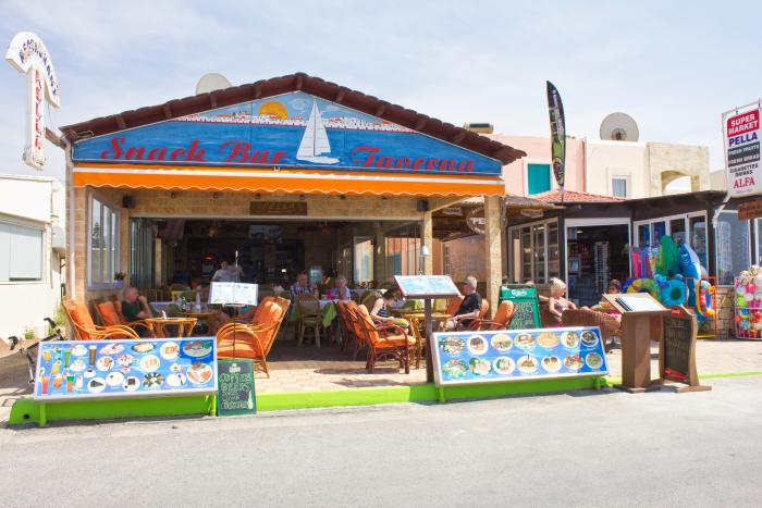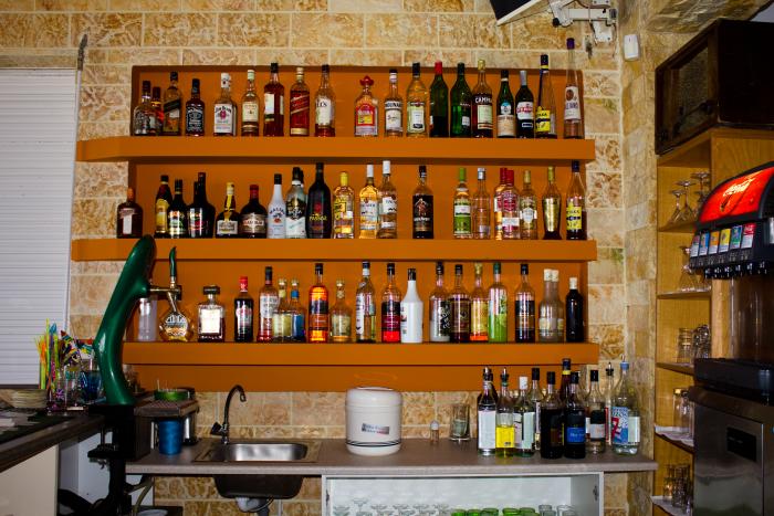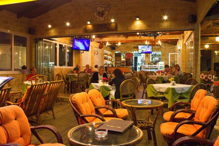 Propone anche una sala giochi con tavolo da biliardo , un mini -market , un ristorante / taverna con un televisore a grande schermo che mostra gli eventi sportivi dal vivo da sette satelliti diversi .