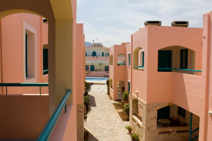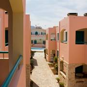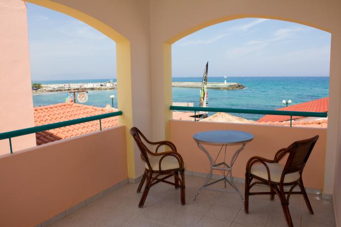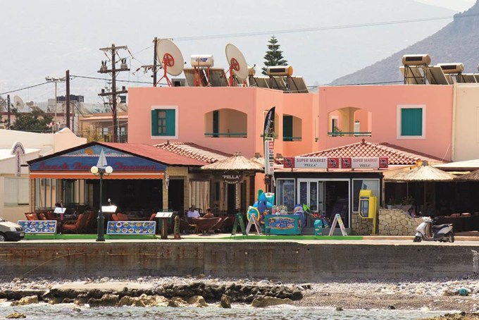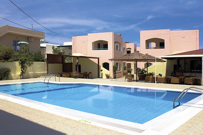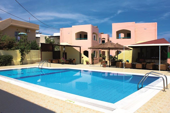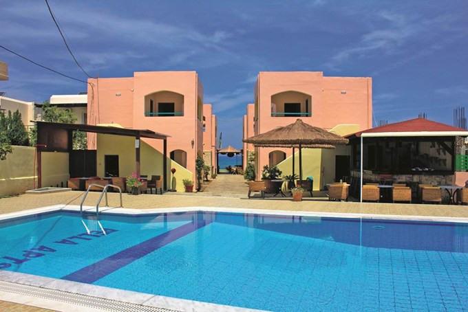Gli appartamenti si affacciano su una splendida spiaggia di sabbia dorata e le acque turchesi del Mediterraneo poco profonda e calma , che lo rende una destinazione ideale per le famiglie con bambini piccoli . Il centro , a 600 metri di distanza , si ha una bella scelta di ristoranti , bar e taverne tradizionali . Se desiderate esplorare l'isola , c'è una fermata dell'autobus nelle vicinanze con un servizio ogni 30 minuti per la vibrante capitale , Heraklion ( 16 km ) e la località balneare di Hersonissos, che è famosa per la sua vivace vita notturna .