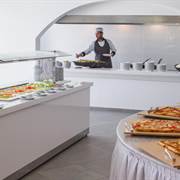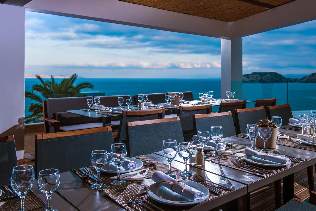 Aperto a colazione, pranzo e cena, il ristorante a buffet serve pietanze della cucina cretese, greca e internazionale, che potrete gustare ammirando il mare e, in lontananza, l'Isola di Dia. Se poi desiderate un drink, avrete modo di recarvi in uno dei 4 bar in loco.