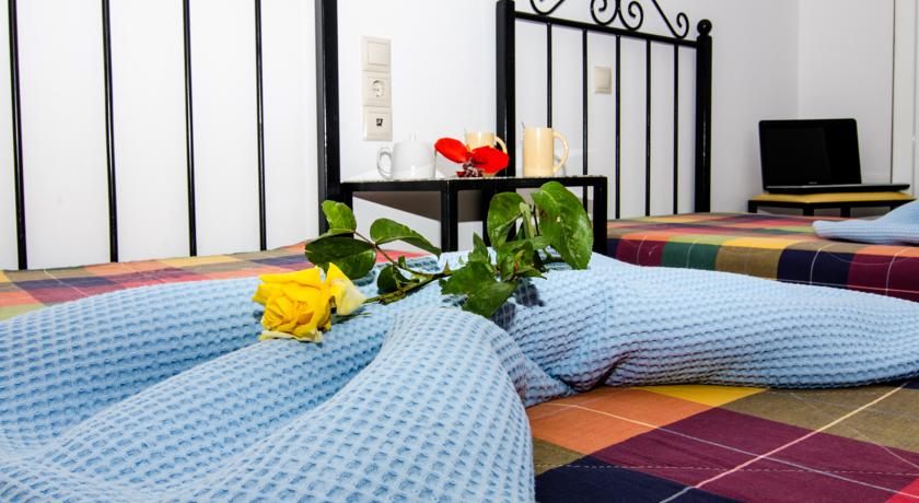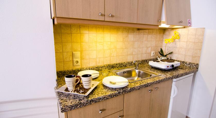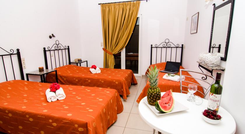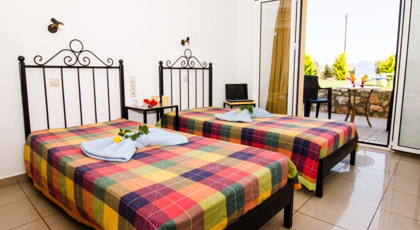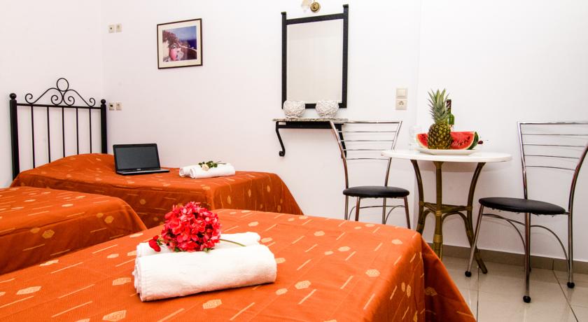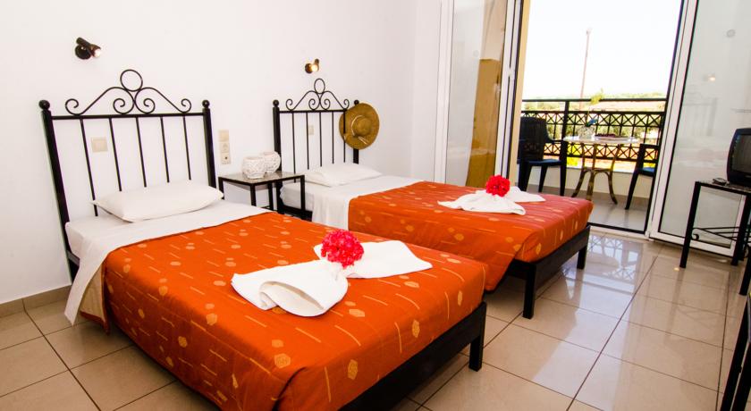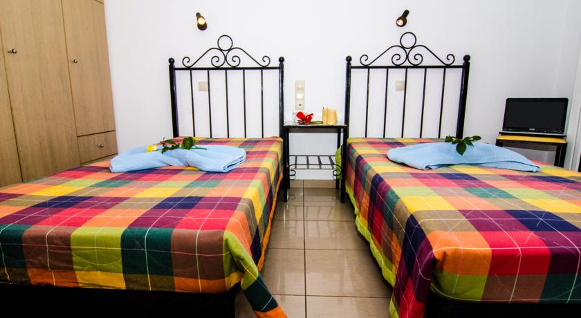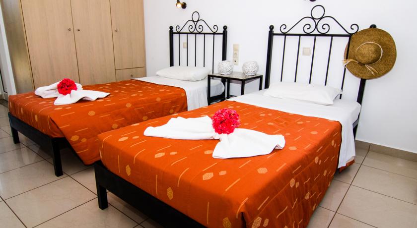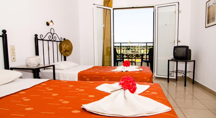 I monolocali del Real Palace sono insonorizzati, si aprono su un balcone o su un patio con vista sulla piscina, sul giardino, sulla montagna o sul mare di Creta, e dispongono di un angolo cottura con frigo e fornelli e di un bagno privato con doccia o vasca.