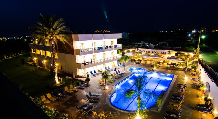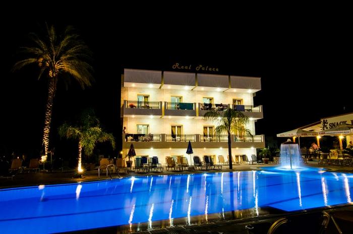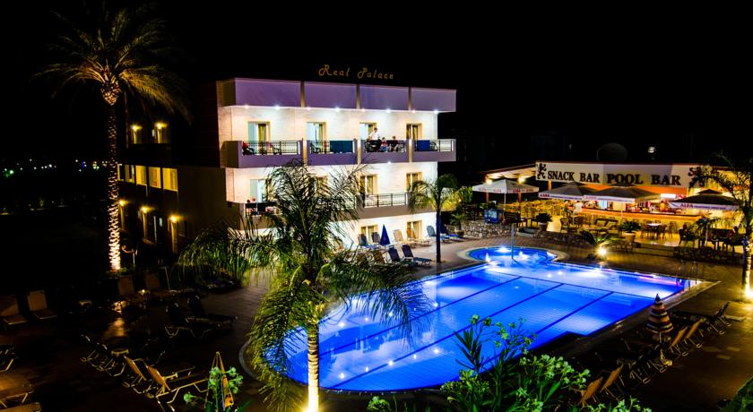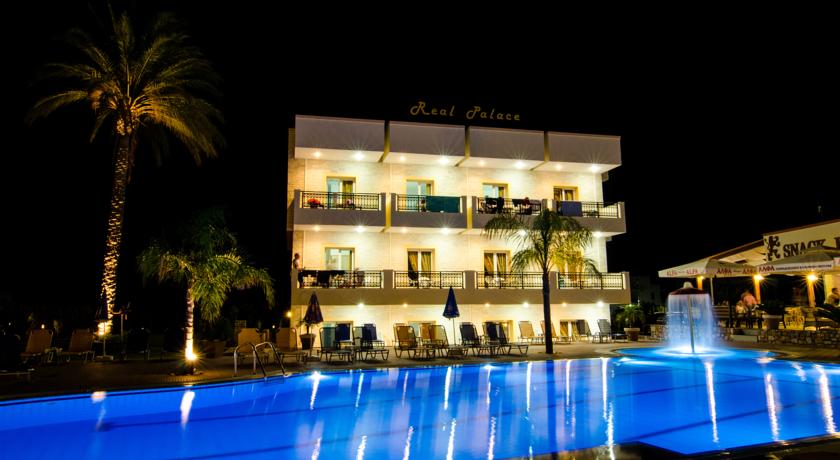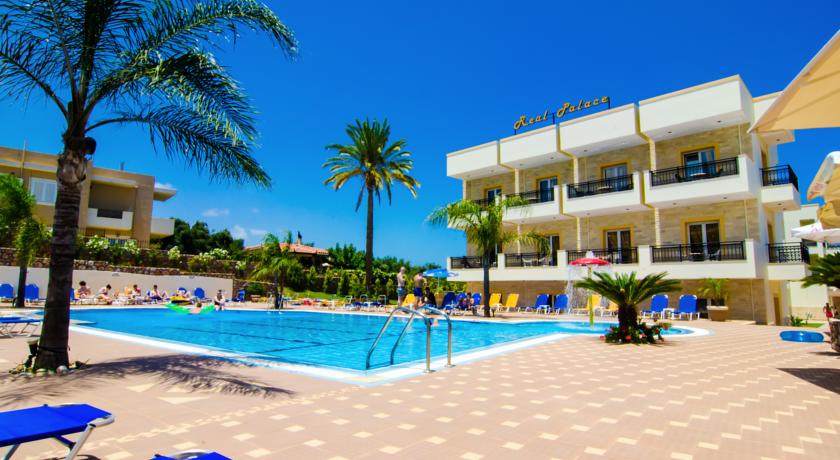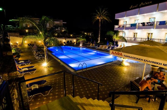 Situato nella periferia di Malia, il Real Palace Hotel & Apartments offre una piscina, una vasca idromassaggio, una terrazza solarium arredata, uno snack bar a bordo piscina, un bar-ristorante e una sala giochi con biliardo e tavolo da ping pong.