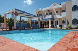 Proprio sulla spiaggia di sabbia di Agia Pelagia Bay, Sirena Apartments a conduzione familiare offre sistemazioni con vista sul mare di Creta e sui giardini dell'hotel.