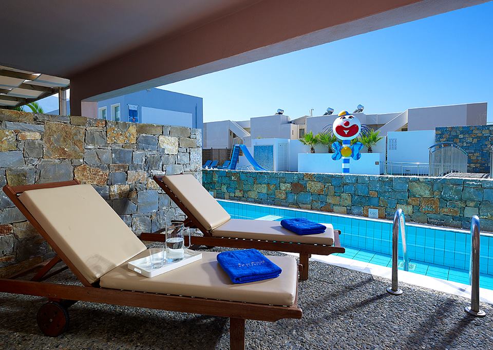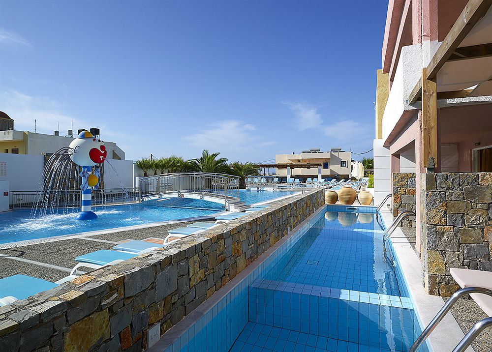 Durante il vostro soggiorno potrete rinfrescarvi con un tuffo in una delle 4 grandi piscine, giocare a mini-golf o divertirvi con una partita a tennis. Grazie alla sauna, alla vasca idromassaggio e ai piacevoli massaggi, il centro benessere dell'Hotel Sissi Bay vi garantisce meravigliosi momenti di relax. Siete inoltre invitati a partecipare alle frequenti cene barbecue e alle tradizionali serate a tema cretese organizzate dall'Hotel.