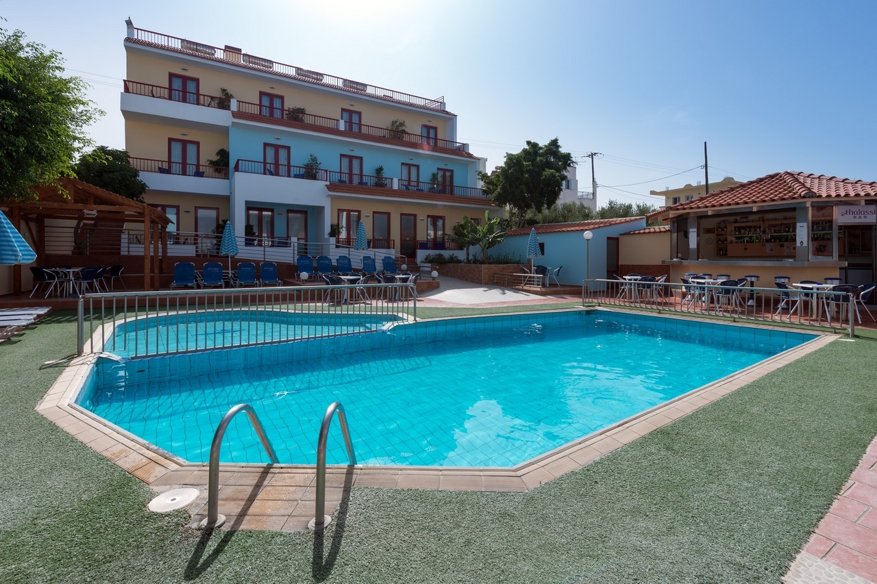 Thalassi Hotel è un albergo 3 stelle che si trova in Sfakaki, sulla costa nord di Rethymnon con il suo porto veneziano e l'atmosfera cosmopolita, nel centro dell'isola di Creta, a 10 km dalla città di Rethymnon ed a soli 200 metri dal mare dalla spiaggia privata di sabbia.  Nel villaggio di Sfakaki ci sono una serie di negozi, taverne e caffetterie locali.