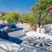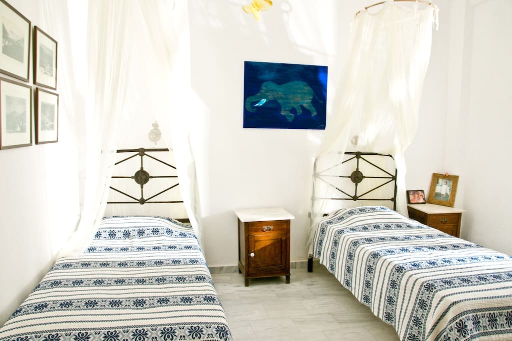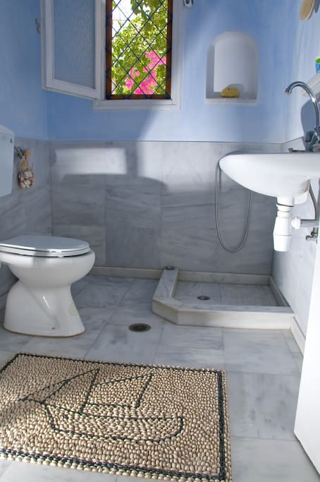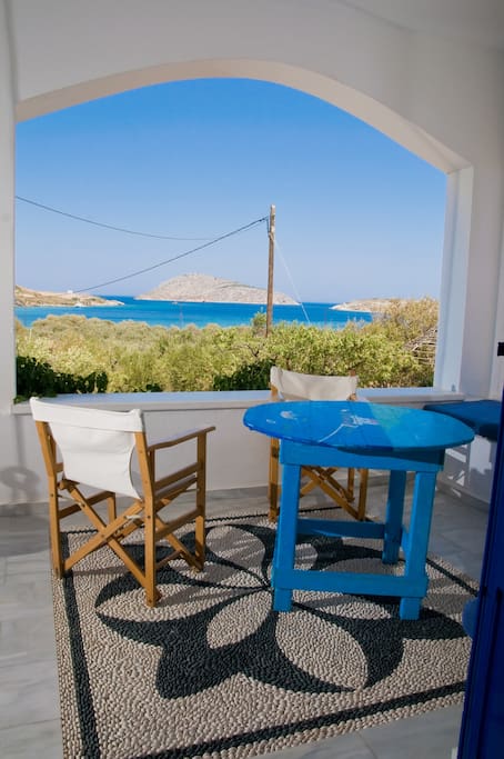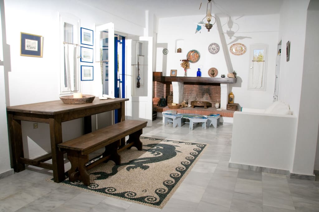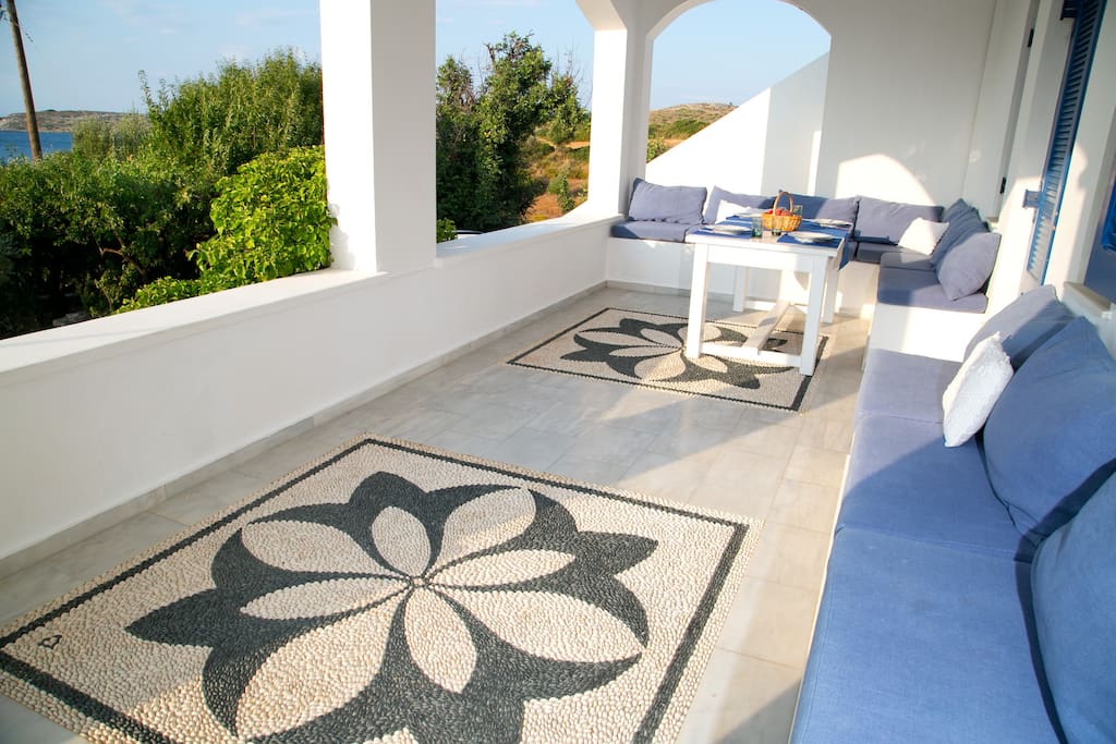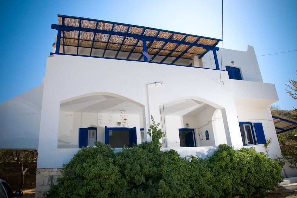 La villa si trova a tre minuti di distanza dalla spiaggia a piedi. Ha tre camere da letto, un ampio soggiorno con camino e una grande vista sul mare, cucina completamente attrezzata, pavimento in marmo con mosaici di ciottoli fatta in casa, zanzariere su tutti i letti e due ampie verande con vista sul mare. Accanto alla villa, lungo la spiaggia si può trovare un piccola taverna.